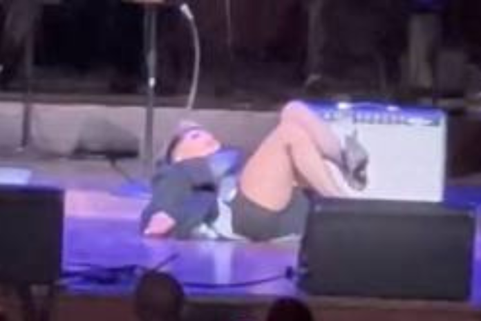 Guzmán estaba interpretando la canción “Mala Hierba” cuando perdió el equilibrio, se cayó hacia atrás y quedó estirada en el escenario.