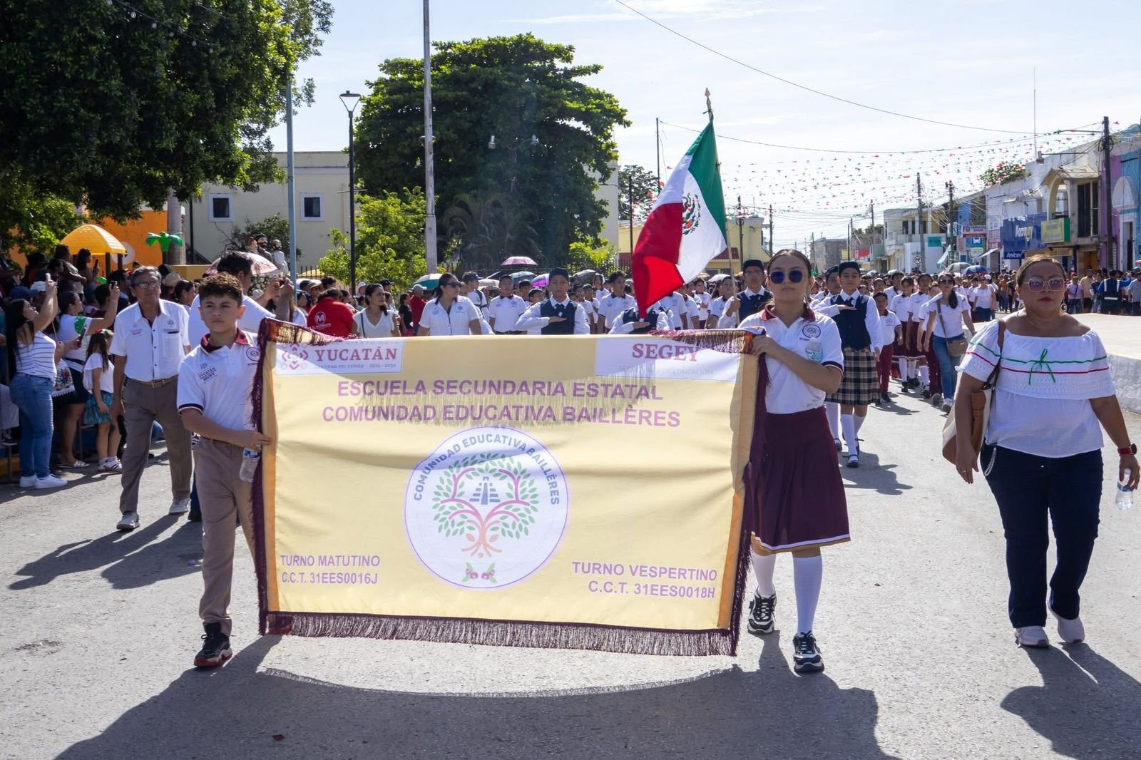 Decenas de familias Kanasín participaron y vivieron una soleada mañana llena de civismo y orgullo patrio. El tradicional desfile inicio en punto de la 8 de la mañana desde el campo de béisbol “Víctor Cervera Pacheco” y recorrió las principales calles de la ciudad, incluyendo la vialidad frente al Palacio Municipal.