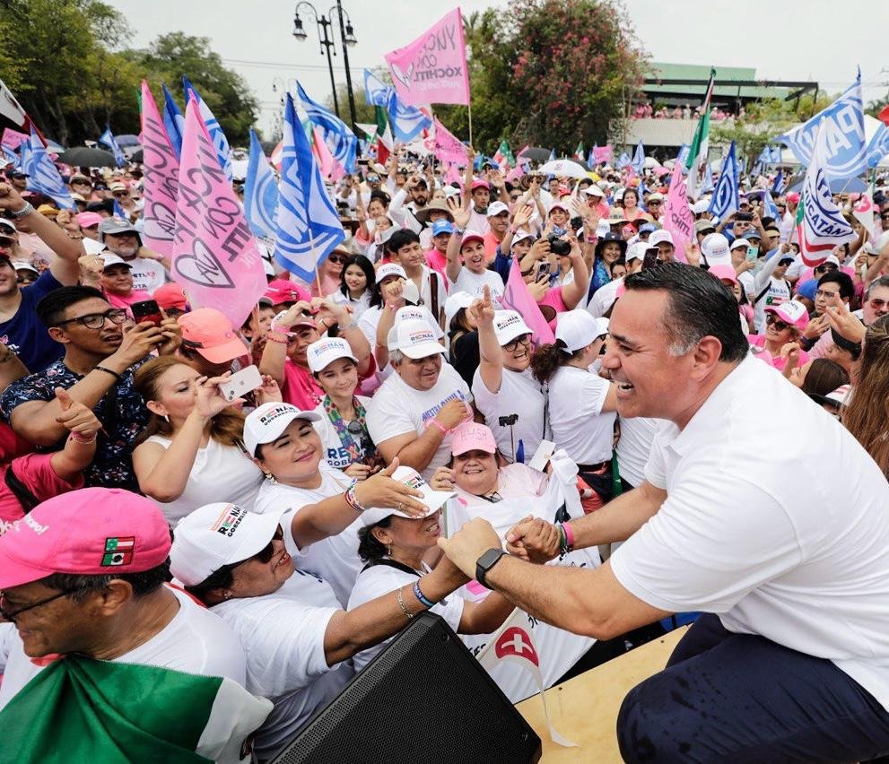 “Lo decimos fuerte y claro, Morena no pasará en Yucatán, ¡vamos a salir a votar! En dos domingos más vamos a celebrar la libertad y la democracia con Xóchitl Gálvez como presidenta de México”, afirmó el candidato común a la gubernatura de Yucatán por el PAN, PRI y Nueva Alianza, Renán Barrera Concha, en mitin realizado en el Monumento a la Patria, como parte de la movilización nacional promovida por organizaciones de la sociedad civil en busca de incentivar la participación de la ciudadanía en las votaciones del próximo 2 de junio.